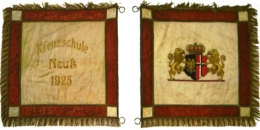 Zum 100-jährigen Jubiläum der Kreuzschule haben viele ehemalige Schülerinnen und Schüler ihrer alten Schule eine Fahne gestiftet. Sie wird bei der Cor-neliuswallfahrt, bei der Fronleichnamsprozession, bei Einschulungs- und Entlassgottesdiensten oder bei anderen festlichen Gelegenheiten getragen oder aufgestellt.